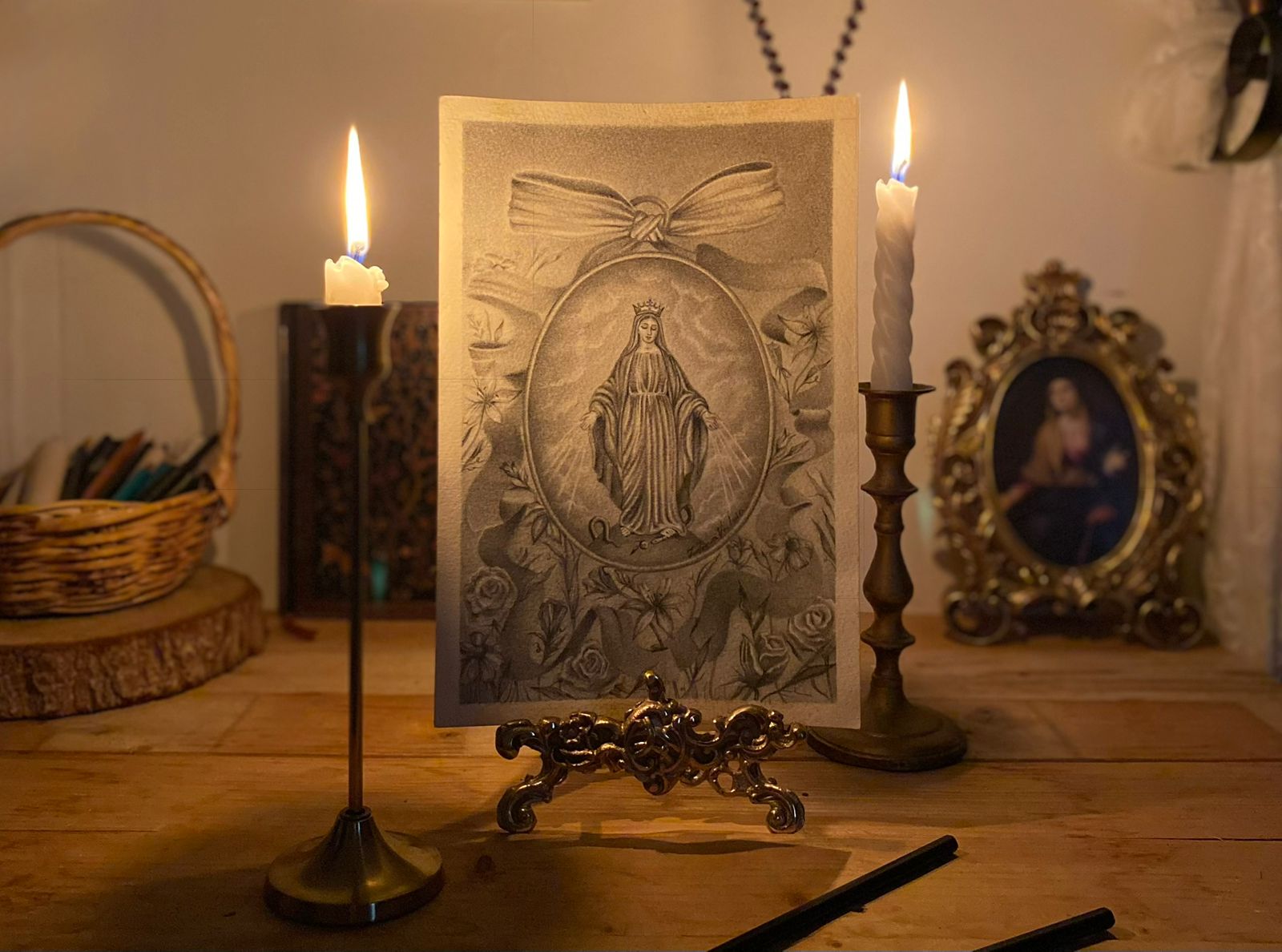 Por el momento no realizo pedidos personalizados de costura, como oratorios, velos, pañoletas, vestidos, etc. Sólo están disponibles los productos que aparecen en esta tienda. Si deseas una obra artística original para ti, tu proyecto, tus productos o tu empresa, ya sea una pintura, ilustración, portada, u otro tipo de creación artística, comunícate conmigo a través del formulario de contacto para revisar los detalles e ideas.