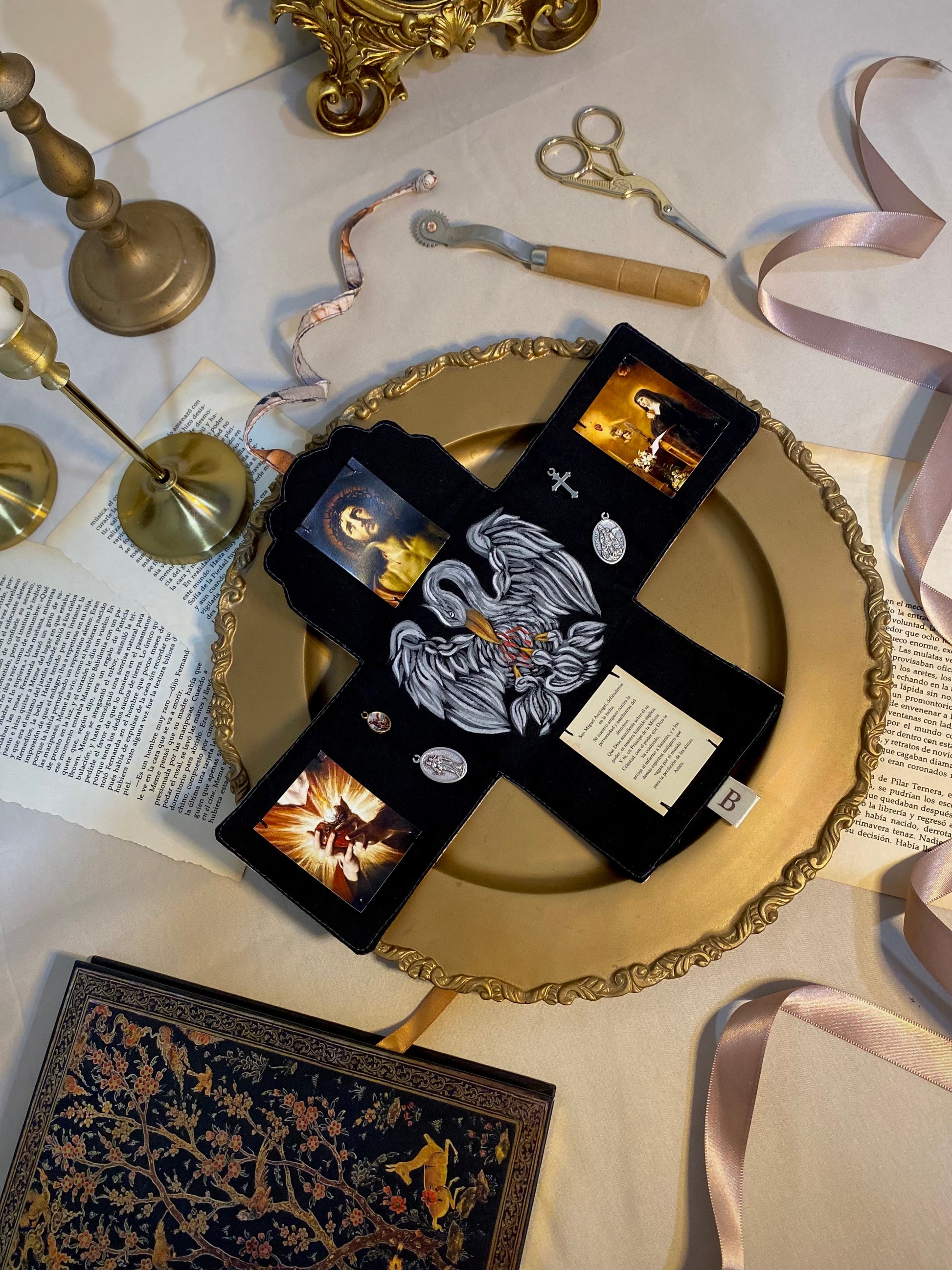Por el momento no realizo pedidos personalizados de costura, como oratorios, velos, pañoletas, vestidos, etc. Sólo están disponibles los productos que aparecen en esta tienda. Si deseas una obra artística original para ti, tu proyecto, tus productos o tu empresa, ya sea una pintura, ilustración, portada, u otro tipo de creación artística, comunícate conmigo a través del formulario de contacto para revisar los detalles e ideas.