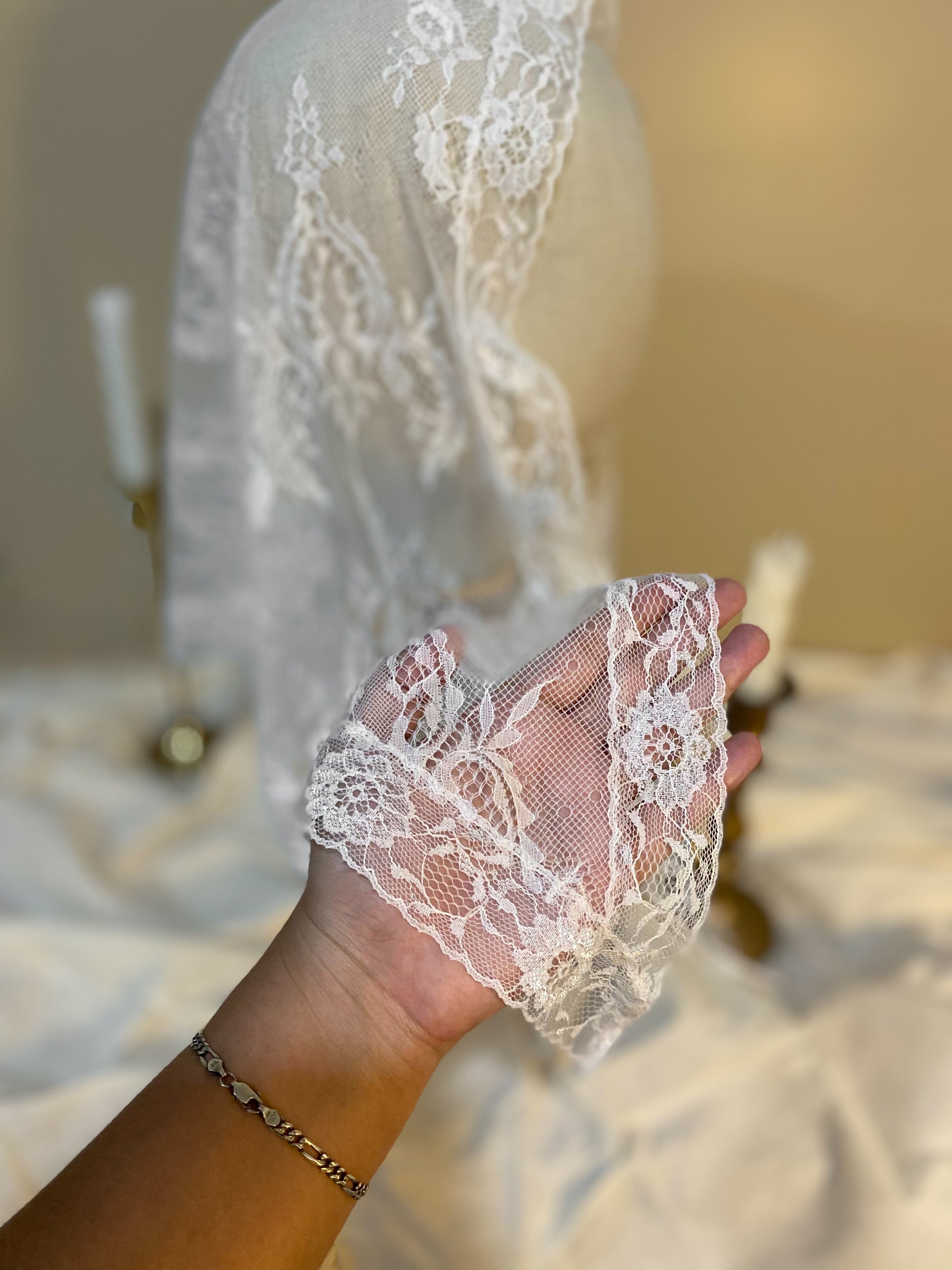 Velo de encaje chantilly, estilo triangular.