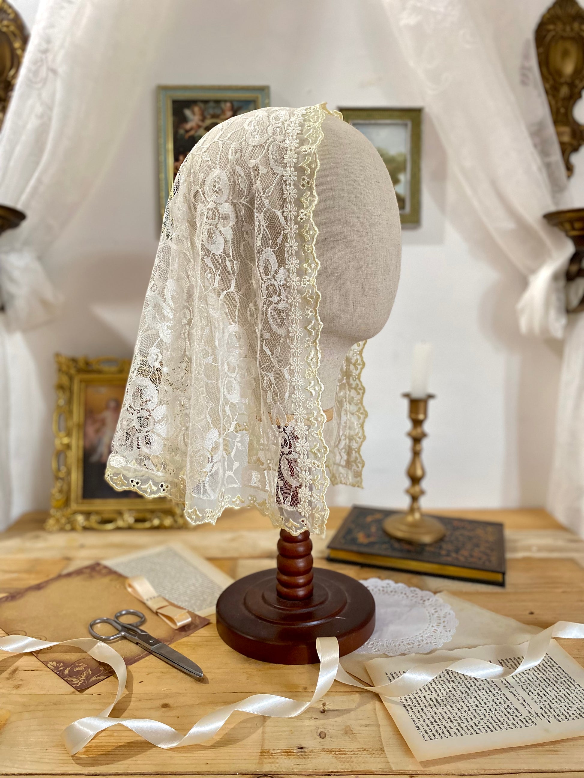 Por el momento no realizo pedidos personalizados de costura, como oratorios, velos, pañoletas, vestidos, etc. Sólo están disponibles los productos que aparecen en esta tienda. Si deseas una obra artística original para ti, tu proyecto, tus productos o tu empresa, ya sea una pintura, ilustración, portada, u otro tipo de creación artística, comunícate conmigo a través del formulario de contacto para revisar los detalles e ideas.